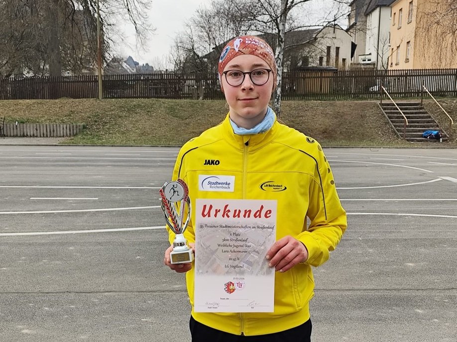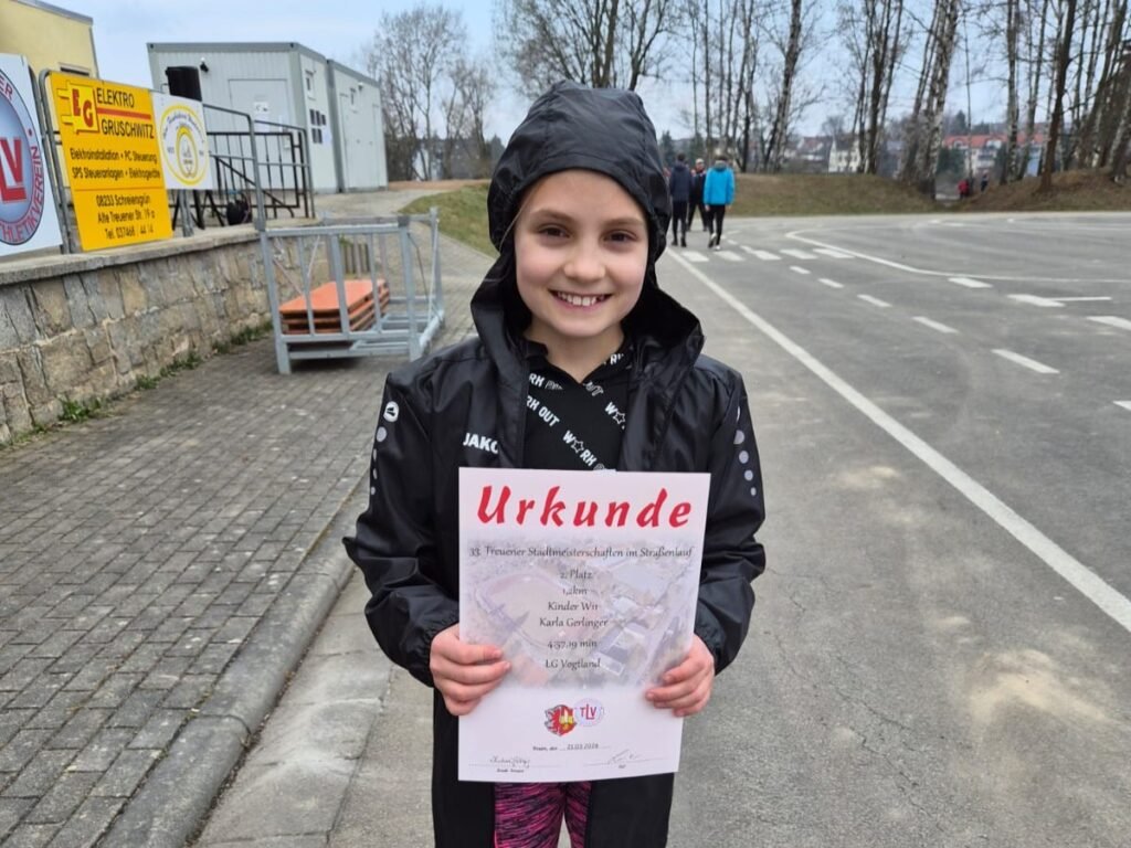 Gleich zu Beginn der 33. Stadtmeisterschaften im Straßenlauf in Treuen setzte in der Altersklasse M6 über 400 Meter Theo Schwabe ein deutliches Ausrufezeichen: In starken 1:46,04 Minuten sicherte er sich souverän den Sieg. In der M9 tat es ihm Lio Heidel gleich. Er gewann die 800-Meter-Distanz in 3:02,80 Minuten und wurde dafür als bester Läufer der M8/M9 mit einem Pokal ausgezeichnet. Ole Suhr belegte in derselben Altersklasse mit 3:34,23 Minuten einen guten siebten Platz. Bei den Mädchen der W9 verpasste Lotte Schwabe mit 3:38,64 Minuten als Vierte nur knapp das Podest.
