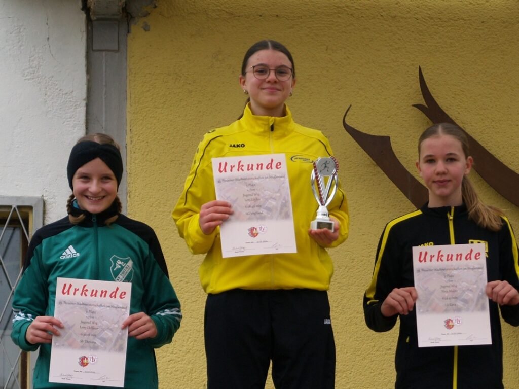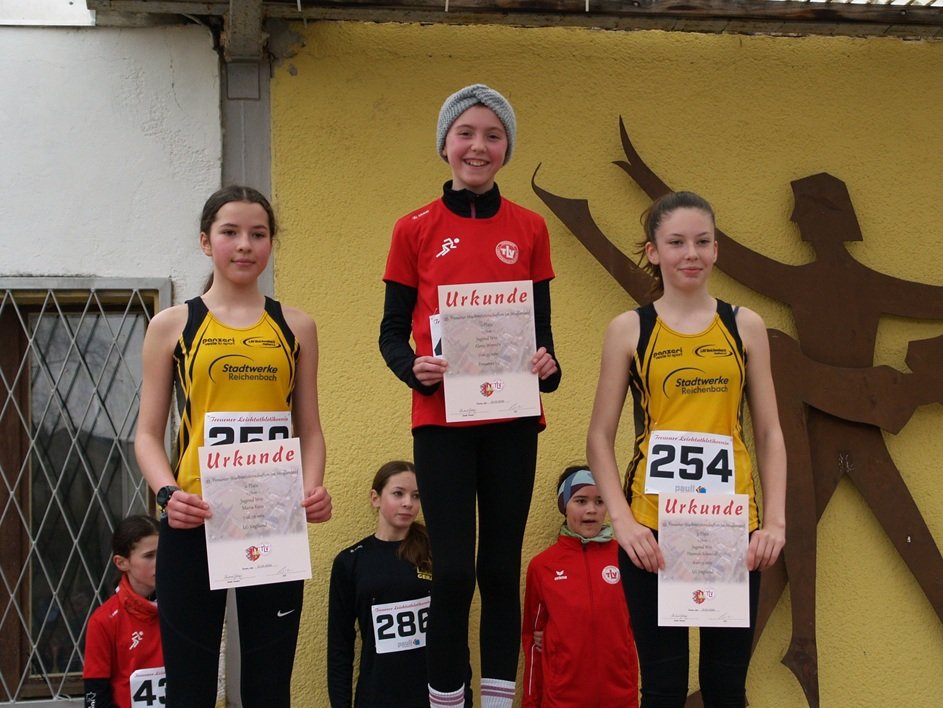 Über 1,7 Kilometer in der W12 durfte sich das Team gleich über einen doppelten Podestplatz freuen: Maria Reus wurde in 7:16,78 Minuten Zweite, gefolgt von Hannah Schmiedl, die mit 8:07,15 Minuten den dritten Rang belegte. Beide mussten sich lediglich der Lokalmatadorin Alena Wernitz geschlagen geben. Bei den Jungen der gleichen Altersklasse lief Jonas Scholze mit 7:20,65 Minuten auf Platz 5.